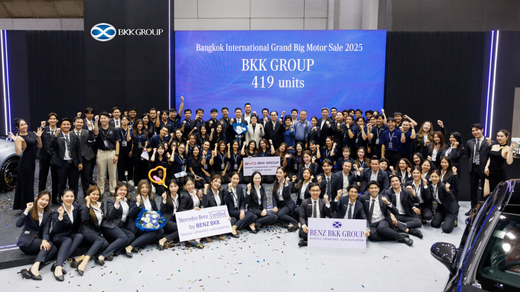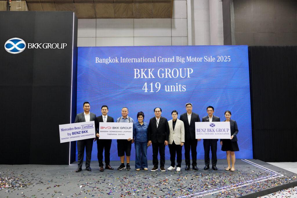 กลุ่มบริษัท BKK Group ประสบความสำเร็จอย่างงดงามในงาน Bangkok International Grand – BIG Motor Sale 2025 ซึ่งจัดขึ้นระหว่างวันที่ 22–31 สิงหาคม 2568 ณ ไบเทค บางนา ด้วยกระแสตอบรับล้นหลามจากลูกค้ากลุ่มรถยนต์พรีเมียมและพลังงานไฟฟ้าโดยทำยอดจองรวมตลอด 10 วัน ได้ถึง 419 คัน แบ่งเป็น Mercedes-Benz 108 คัน, Mercedes-Benz Certified 70 คัน และ BYD 241 คัน ตอกย้ำบทบาทความเป็นผู้นำดีลเลอร์กรุ๊ปที่แข็งแกร่งที่สุดในกรุงเทพฯ พร้อมจัดแสดงรถยนต์รุ่นใหม่และโปรโมชันที่ตอบโจทย์ทุกความต้องการของลูกค้า