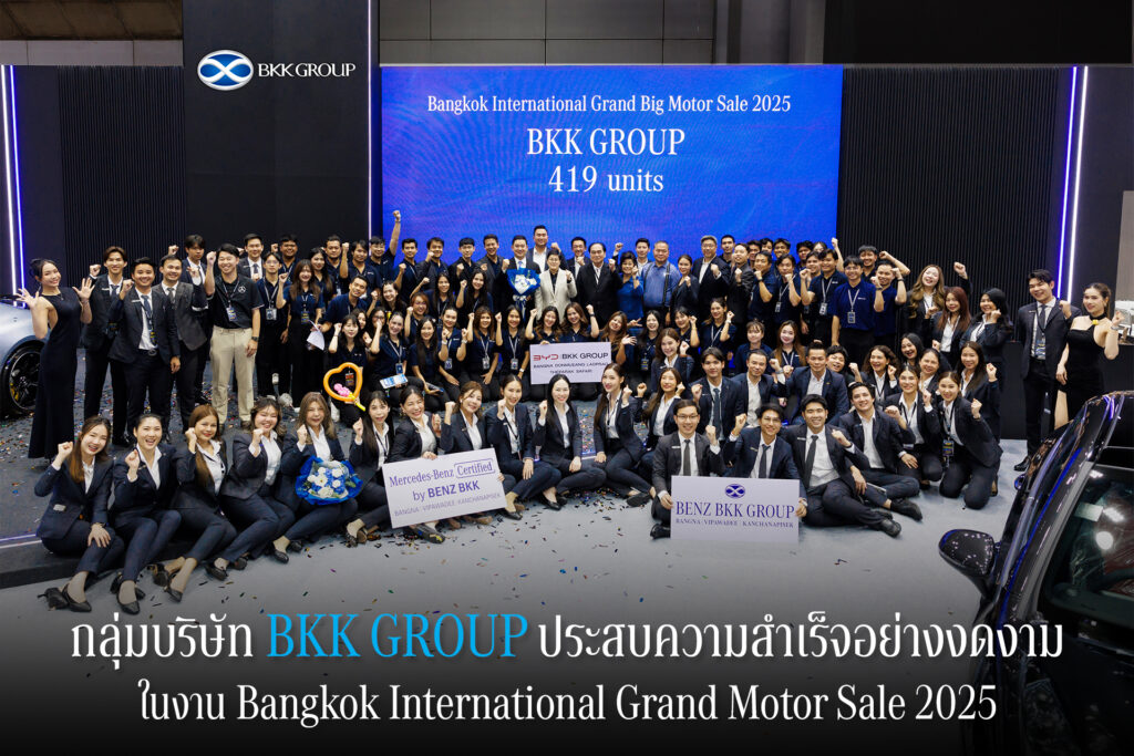 กลุ่มบริษัท BKK Group ประสบความสำเร็จอย่างงดงามในงาน Bangkok International Grand – BIG Motor Sale 2025 ซึ่งจัดขึ้นระหว่างวันที่ 22–31 สิงหาคม 2568 ณ ไบเทค บางนา ด้วยกระแสตอบรับล้นหลามจากลูกค้ากลุ่มรถยนต์พรีเมียมและพลังงานไฟฟ้าโดยทำยอดจองรวมตลอด 10 วัน ได้ถึง 419 คัน แบ่งเป็น Mercedes-Benz 108 คัน, Mercedes-Benz Certified 70 คัน และ BYD 241 คัน ตอกย้ำบทบาทความเป็นผู้นำดีลเลอร์กรุ๊ปที่แข็งแกร่งที่สุดในกรุงเทพฯ พร้อมจัดแสดงรถยนต์รุ่นใหม่และโปรโมชันที่ตอบโจทย์ทุกความต้องการของลูกค้า