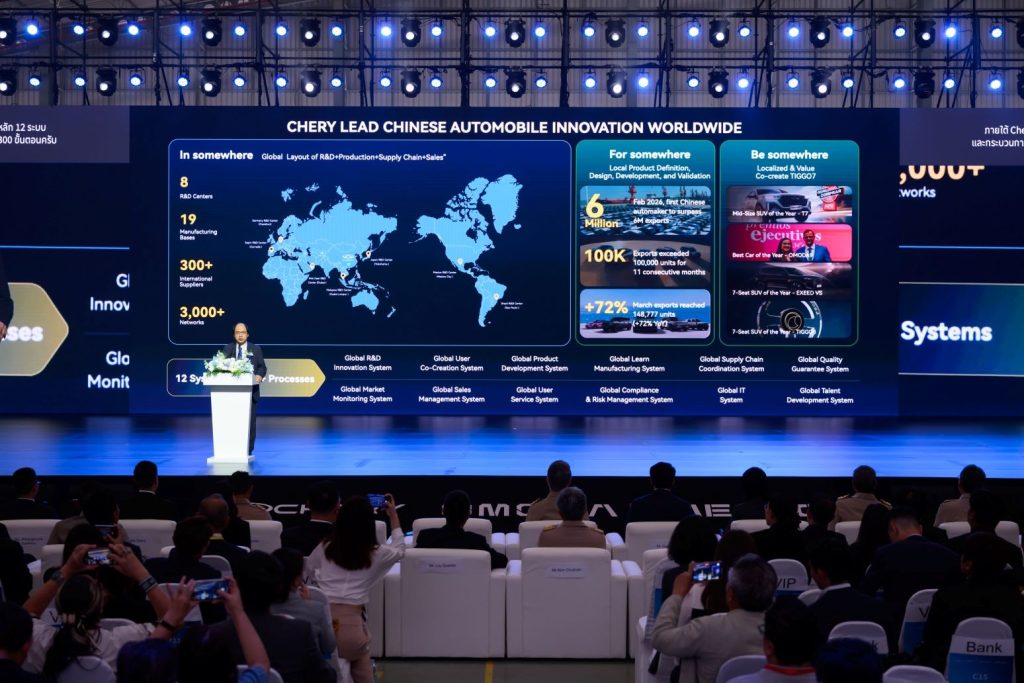 Chery Group ยังคงเสริมความแข็งแกร่งในฐานะผู้นำด้านนวัตกรรมยานยนต์ระดับโลก ด้วยเครือข่ายศูนย์วิจัยและพัฒนา 8 แห่ง ฐานการผลิต 19 แห่ง พันธมิตรซัพพลายเออร์ระดับนานาชาติกว่า 300 ราย และเครือข่ายการขายและบริการมากกว่า 3,000 แห่งทั่วโลก โดยในเดือนกุมภาพันธ์ที่ผ่านมา Chery กลายเป็นผู้ผลิตรถยนต์สัญชาติจีนรายแรกที่มียอดส่งออกรวมสะสมทะลุ 6 ล้านคัน และมียอดส่งออกเกิน 100,000 คันต่อเดือนต่อเนื่อง 11 เดือน ขณะที่เดือนมีนาคมมียอดส่งออก 148,777 คัน เติบโต 72% เมื่อเทียบกับปีก่อน