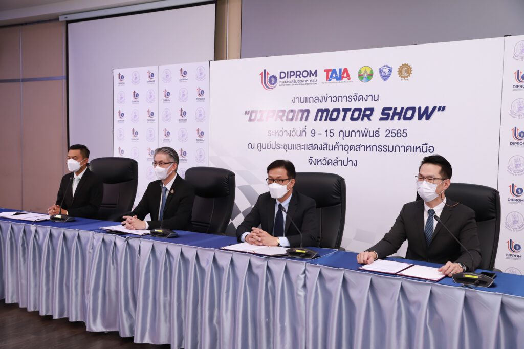 นายณัฐพล รังสิตพล อธิบดีกรมส่งเสริมอุตสาหกรรม กล่าวว่า อุตสาหกรรมยานยนต์ยังคงเป็นอุตสาหกรรมที่มีศักยภาพ และเป็นปัจจัยสำคัญต่อการเติบโตของมูลค่าทางเศรษฐกิจของประเทศ เนื่องด้วยไทยยังคงเป็นฐานสำคัญในการผลิตทั้งชิ้นส่วนยานยนต์ การประกอบรถยนต์ รวมถึงการผลิตรถยนต์เชิงพาณิชย์ ซึ่งสถานการณ์อุตสาหกรรมยานยนต์ไทยปี 2564 ที่ผ่านมานั้นพบว่าเริ่มมีการฟื้นตัวอย่างต่อเนื่องจากการส่งออกที่ปรับตัวเพิ่มขึ้น โดยมีการผลิตรถยนต์ 1.6 ล้านคัน ซึ่งเพิ่มขึ้น 12% เมื่อเปรียบเทียบกับปี 2563 แบ่งเป็นขายในประเทศ 0.75 ล้านคัน และส่งออกต่างประเทศ 0.85 ล้านคัน ส่วนในปี 2565 ได้ประมาณการว่าจะมีการผลิตรถยนต์ 1.7-1.8 ล้านคัน ซึ่งมีปัจจัยที่สำคัญทั้งการเปิดประเทศให้นักท่องเที่ยวเข้ามาเที่ยวมากขึ้น มาตรการส่งเสริมการลงทุนและสิทธิประโยชน์จากภาครัฐ รวมถึงการส่งออกที่ขยายตัวตามเศรษฐกิจโลกที่ฟื้นตัว ดังนั้น ดีพร้อม จึงได้จับมือกับสมาคมอุตสาหกรรมยานยนต์ไทย รวมถึงภาคีเครือข่ายภาครัฐ-เอกชน ร่วมจัดงาน “DIPROM MOTOR SHOW” ซึ่งจะจัดขึ้นที่อาคารศูนย์ประชุมและแสดงสินค้าอุตสาหกรรมภาคเหนือ จังหวัดลำปาง ระหว่างวันที่ วันที่ 9-15 กุมภาพันธ์ 2565 และเป็นครั้งแรกที่ ดีพร้อม ดำเนินการจัดกิจกรรมดังกล่าว เพื่อกระตุ้นตลาดยานยนต์โดยเฉพาะในกลุ่มจังหวัดภาคเหนือ และเป็นการเพิ่มช่องทางในการจำหน่ายสำหรับผู้ประกอบการอุตสาหกรรมยานยนต์ โดยมีค่ายรถยนต์และจักรยานยนต์ชั้นนำเข้าร่วมมากกว่า 15 แบรนด์ ซึ่งคาดว่าจากการจัดกิจกรรมนี้จะสามารถสร้างมูลค่าทางเศรษฐกิจให้กับผู้ประกอบภาคการผลิตของอุตสาหกรรมยานยนต์ได้กว่า 100 ล้านบาท