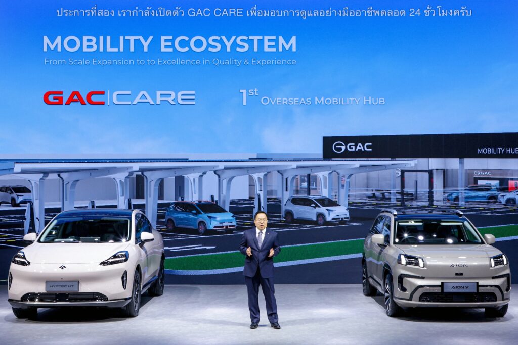 Mr. Andrew Wang ประธานกรรมการบริหาร GAC AION Thailand ได้เปิดตัวนโยบาย “GAC CARE” ซึ่งเป็นนโยบายบริการแรกของ GAC สำหรับตลาดต่างประเทศ เพื่อดูแลรถยนต์ของลูกค้าตลอดอายุการใช้งาน โดยถูกสร้างขึ้นบน 4 เสาหลักสำคัญ ได้แก่ ยึดลูกค้าเป็นศูนย์กลาง (Customer Centric), มอบความเชื่อมั่นขั้นสูง (Advanced Assurance) ที่ขับเคลื่อนด้วยคุณภาพอันดับ 1 จาก J.D. Power, มีการตอบสนองที่รวดเร็ว (Rapid Response) รับประกันการซ่อมเสร็จสิ้นภายใน 7 วัน และมีความเชี่ยวชาญเฉพาะด้าน (Exclusive Expertise) ดูแลผู้ใช้ด้วยความเอาใจใส่ระดับมืออาชีพ