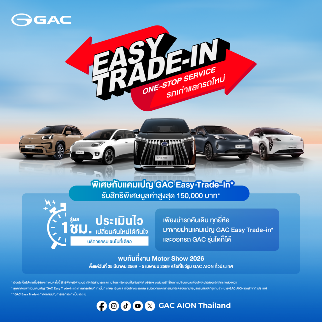GAC Easy Trade-in: แคมเปญรถเก่าแลกรถใหม่ รับส่วนลดพิเศษสูงสุด 150,000*