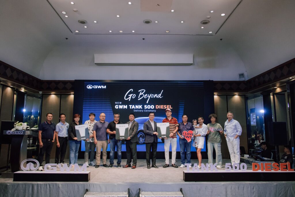 ล่าสุด ได้สร้างอีกหนึ่งหมุดหมายสำคัญในงาน “Go Beyond NEW GWM TANK 500 DIESEL Delivery Ceremony” เพื่อเฉลิมฉลองความสำเร็จของ NEW GWM TANK 500 DIESEL ที่กวาดยอดจองเพื่อรอการส่งมอบกว่า 500 คันหลังเปิดตัวได้ไม่นาน พร้อมจัดพิธีส่งมอบรถล็อตพิเศษเพิ่มอีก 20 คันอย่างเป็นทางการ ณ โรงแรมสุโขทัย เพื่อมอบประสบการณ์พิเศษแก่ลูกค้าคนสำคัญ โดยความสำเร็จก้าวแรกในไทยครั้งนี้ ถือเป็นการก้าวสู่การเป็นผู้นำในกลุ่มรถยนต์เอสยูวีพรีเมียม 7 ที่นั่ง