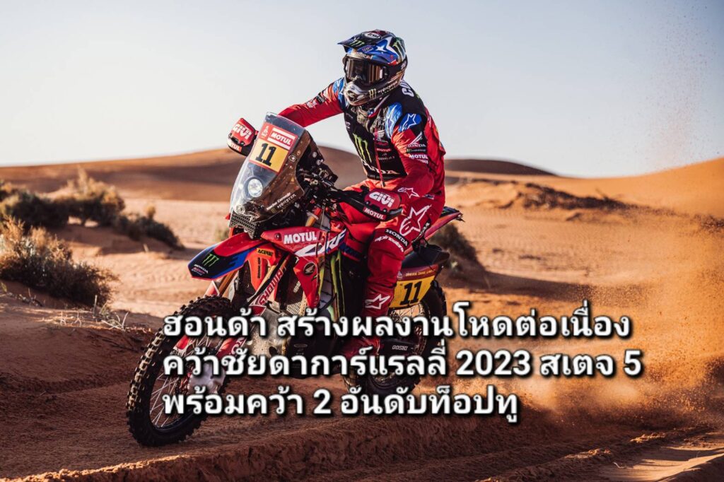 ฮอนด้า สร้างผลงานโหดอย่างต่อเนื่องใน ดาการ์ แรลลี่ 2023 (Dakar Rally 2023) หลังโชว์ฟอร์มคว้า 3 อันดับบนท็อป 5 ในสเตจ 4 โดยในสเตจที่ 5 เอเดียน ฟาน เบเวอเรน จากยอดทีมแข่ง มอนสเตอร์ เอเนอร์จี ฮอนด้า (Monster Energy Honda Team) ที่เข้าเป็นอันดับ 5 ในสเตจ 4 สามารถเร่งฟอร์มบิดควบรถแข่ง Honda CRF450 Rally คว้าชัยชนะไปในสเตจ 5 ได้สำเร็จ ตามติดมาด้วยเพื่อนร่วมทีมอย่าง โฮเซ่ อิกนาซิโอ้ คอร์เนโฮ่ ที่คว้าอันดับที่ 2 เมื่อวันที่ 5 มกราคม ที่ผ่านมา