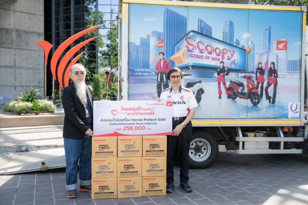 เมื่อวันที่ 4 ธันวาคม 2568 บริษัท ไทยฮอนด้า จำกัด ผู้ผลิตและจัดจำหน่ายรถจักรยานยนต์ และเครื่องยนต์อเนกประสงค์ฮอนด้าในประเทศไทย ร่วมกับ ไทยพีบีเอส ส่งมอบน้ำมันเครื่อง Honda Protech Gold สำหรับรถจักรยานยนต์ จำนวน 2,400 ขวด มูลค่ารวม 258,000 บาท เพื่อนำไปส่งมอบให้ศูนย์ซ่อมสร้างเพื่อชุมชน หรือ Fix it Center ที่สำนักงานคณะกรรมการอาชีวศึกษา วิทยาลัยเทคนิคหาดใหญ่ ที่จัดตั้งขึ้นเพื่อซ่อมรถจักรยานยนต์ และเครื่องใช้ไฟฟ้าที่ได้รับความเสียหายจากเหตุการณ์น้ำท่วมที่ภาคใต้ โดยไม่คิดค่าใช้จ่าย
