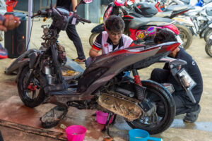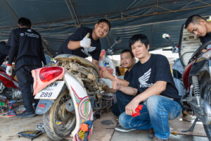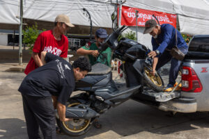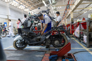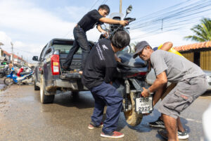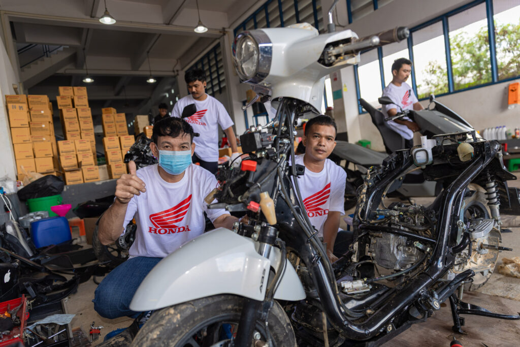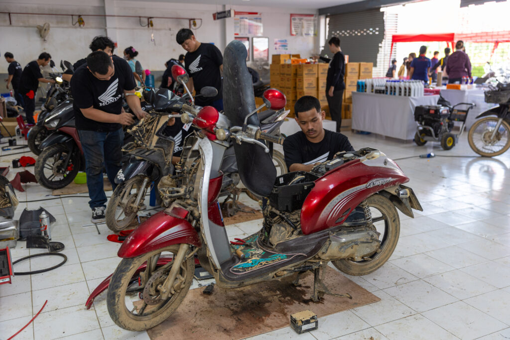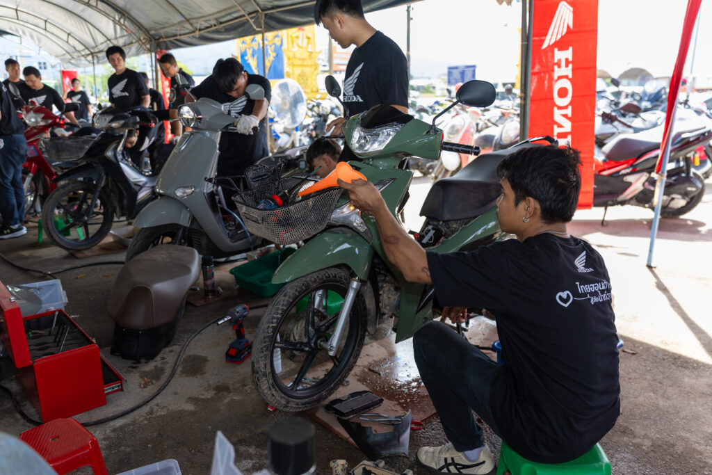 โดยทีมช่างมืออาชีพและอาสาสมัครช่างจากศูนย์บริการฮอนด้าได้เร่งฟื้นฟูรถจักรยานยนต์ทุกคัน ตั้งแต่รถที่ได้รับผลกระทบเล็กน้อยไปจนถึงรถที่เสียหายจนไม่สามารถใช้งานได้ ทีมช่างได้ตรวจสอบระบบสำคัญ ล้างโคลนที่ตกค้างในชิ้นส่วนและเปลี่ยนของเหลวที่ได้รับผลกระทบ เพื่อให้รถกลับมาพร้อมใช้งานอย่างปลอดภัย ทั้งนี้ หากรถที่จมน้ำไม่ได้รับการดูแลอย่างถูกวิธี อาจเกิดปัญหาระยะยาว เช่น ระบบไฟฟ้าลัดวงจร เครื่องยนต์สึกหรอจากความชื้น หรือโคลนอุดตันในระบบต่าง ๆ ซึ่งล้วนเป็นความเสียหายที่จำเป็นต้องได้รับการซ่อมโดยผู้เชี่ยวชาญเท่านั้น