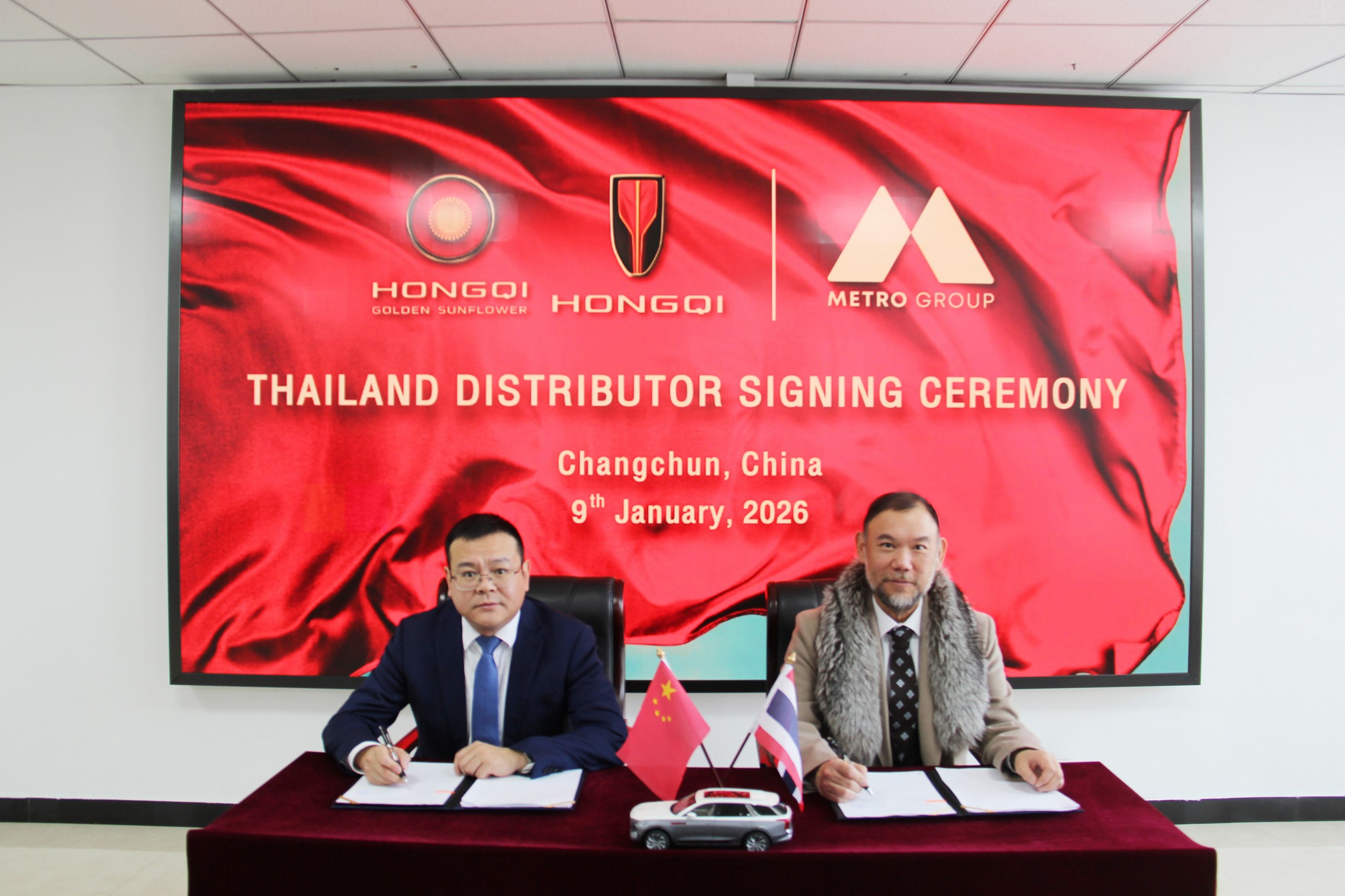 เมโทร กรุ๊ป ลงนามข้อตกลงความร่วมมือกับบริษัท China FAW Group Import & Export จำกัด รับการแต่งตั้งเป็นผู้จัดจำหน่าย “HONGQI” (หงษ์ฉี) รถยนต์ระดับหรูที่เป็น “แบรนด์ประวัติศาสตร์” ของจีนอย่างเป็นทางการในประเทศไทย ณ เมืองฉางชุน สาธารณรัฐประชาชนจีน ครอบคลุมความร่วมมือเชิงกลยุทธ์ในด้านต่างๆ ได้แก่ การแต่งตั้งผู้แทนจำหน่ายในประเทศ การสร้างแบรนด์ การขาย การส่งเสริมการตลาดและบริการหลังการขาย นับเป็นอีกหนึ่งความเคลื่อนไหวครั้งประวัติศาสตร์ของวงการยานยนต์ไทย เมื่อแบรนด์รถยนต์ที่เก่าแก่จนเป็นตำนาน และทรงเกียรติที่สุดของสาธารณรัฐประชาชนจีนจะเข้ามาทำตลาดในประเทศไทย