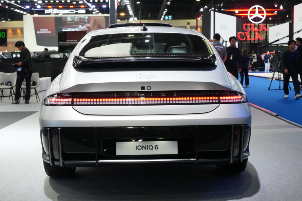 ขณะเดียวกัน IONIQ 6 รถยนต์ไฟฟ้า 100% ดีไซน์ Streamliner โดดเด่นด้วยเส้นสายโค้งมนแบบ Single-curve ที่ช่วยเสริมประสิทธิภาพด้านอากาศพลศาสตร์ มาพร้อมแพลตฟอร์มรถยนต์ไฟฟ้า E-GMP และระบบแบตเตอรี่ 800 โวลต์ รองรับการชาร์จเร็วระดับ Ultra-fast Charging 350 kW สามารถชาร์จพลังงานได้ถึง 80% ภายในเวลาเพียง 18 นาที พร้อมระยะทางการขับขี่สูงสุด 545 กิโลเมตร ตามมาตรฐาน WLTP ภายในห้องโดยสารออกแบบภายใต้แนวคิด Mindful Cocoon ที่เน้นความผ่อนคลายและความสะดวกสบาย เพื่อยกระดับประสบการณ์การเดินทางของรถยนต์ไฟฟ้ายุคใหม่