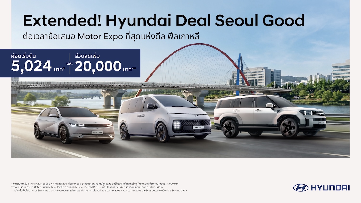 จากความสำเร็จในงาน Motor Expo 2025 ที่ผ่านมา บริษัท ฮุนได โมบิลิตี้ (ประเทศไทย) จำกัด เผยกระแสตอบรับจากผู้บริโภคชาวไทยเกินความคาดหมาย ส่งผลให้ยอดจองรถยนต์ฮุนไดเพิ่มขึ้นอย่างต่อเนื่อง เพื่อตอบแทนความเชื่อมั่นและความไว้วางใจจากลูกค้า ฮุนไดจึงประกาศขยายระยะเวลาแคมเปญพิเศษ “Hyundai Deal SEOUL Good” ต่อเนื่องไปจนถึงวันที่ 31 ธันวาคม 2568 มอบข้อเสนอสุดคุ้มที่ลูกค้าสามารถเลือกได้ตามไลฟ์สไตล์ ทั้งอัตราดอกเบี้ยพิเศษเริ่มต้น 0% แพ็กเกจผ่อนชำระเริ่มต้นเพียง 5,024 บาทต่อเดือน หรือรับส่วนลดพิเศษเพิ่มสูงสุด 20,000 บาท* สำหรับการจองและรับรถรุ่นที่ร่วมรายการภายในระยะเวลาแคมเปญ