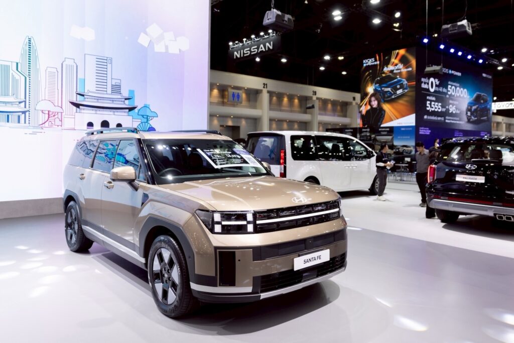 Hyundai All-New SANTA FE Hybrid SUV 3 แถว 6 ที่นั่ง โฉมใหม่ ที่สร้างกระแสตอบรับอย่างโดดเด่นตั้งแต่เปิดตัว ด้วยดีไซน์ทรง BOXY อันเป็นเอกลักษณ์ ผสานเทคโนโลยี Parallel Hybrid จากเกาหลี ให้พละกำลังสูงสุด 232 แรงม้า แต่ยังประหยัดน้ำมันได้ถึง 19.6 กม./ลิตร มาพร้อมข้อเสนอพิเศษ ดอกเบี้ยเริ่มต้นเพียง 0.99% ดาวน์ 25% ผ่อน 48 เดือน* รับส่วนลดเพิ่มทันที 20,000 บาท* ฟรีประกันภัยชั้นหนึ่ง 1 ปี* รับประกันตัวรถ 5 ปี* รับประกันแบตเตอรี่แรงดันสูง 8 ปี* และบริการช่วยเหลือฉุกเฉิน 5 ปีไม่จำกัดระยะทาง*