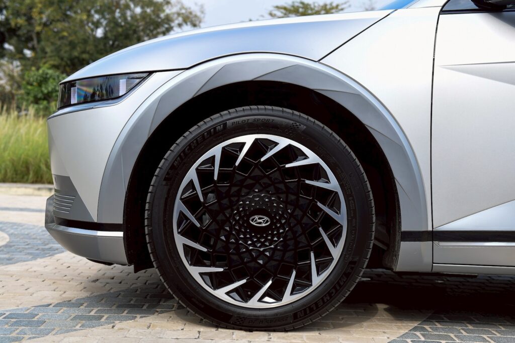 - แพลตฟอร์มเฉพาะ EV (E-GMP):มอบพื้นห้องโดยสารเรียบและ จุดศูนย์ถ่วงต่ำ เพิ่มเสถียรภาพในการขับขี่ ควบคุมในโค้งได้อย่างมั่นใจไร้กังวล พร้อมเทคโนโลยีแบตเตอรีแรงดันสูง 800 โวลต์ รองรับชาร์จเร็ว 10–80% ใน 18 นาที หรือหากมีเวลาชาร์จเพียง 16 นาทีก็สามารถเพิ่มระยะทางได้ถึง 481 กิโลเมตรตามมาตรฐาน WLTP นอกจากนี้ ยังฟังก์ชัน V2L จ่ายไฟให้อุปกรณ์ไฟฟ้าได้สูงสุด 3.6 kW