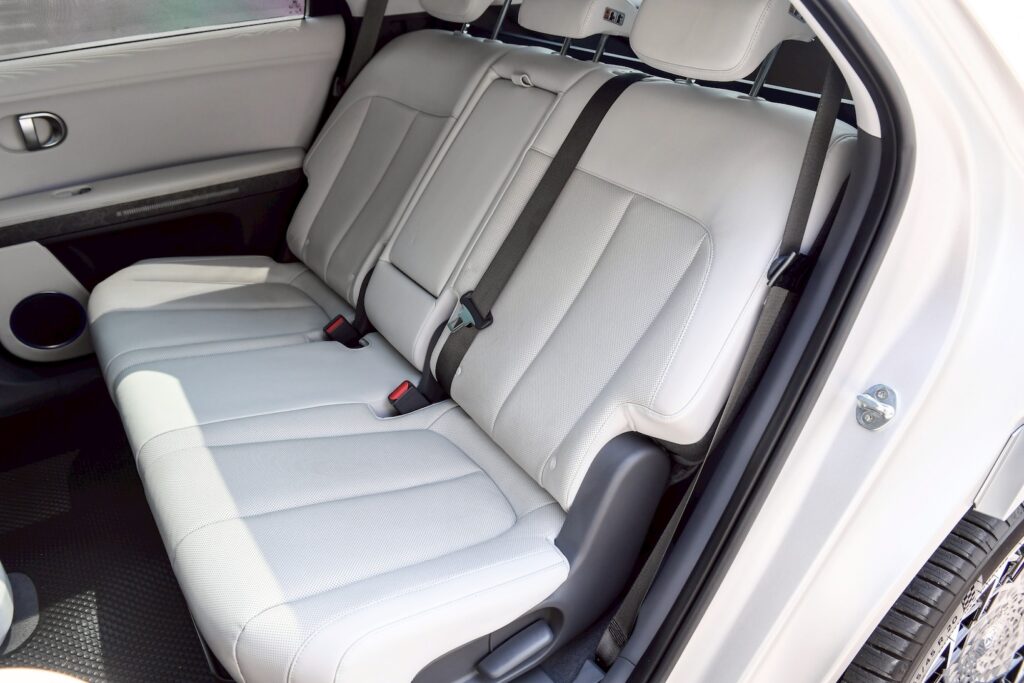 - Living Space สำหรับทุกไลฟ์สไตล์:ฐานล้อยาว 3 เมตร มอบพื้นที่ห้องโดยสารที่กว้างขวาง เบาะผู้ขับปรับเอนได้แบบ Zero gravity พร้อมคอนโซลกลางเลื่อนอิสระที่ปรับการใช้งานได้ตามใจ เพิ่มพื้นที่ใช้สอยภายในเบาะหลังมาพร้อมกับจุด outlet เพื่อการใช้งานเครื่องใช้ไฟฟ้าได้ทุกที่ทุกเวลา ด้วยความกว้างขวางและความสามารถในปรับเปลี่ยนการใช้งานได้ตามไลฟ์สไตล์ทำให้ IONIQ 5 เหมือนเป็น “Home away from home”