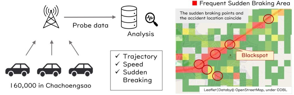 ด้าน TMF มุ่งมั่นในการค้นหาแนวทางใหม่ๆ เพื่อปรับปรุงความปลอดภัยบนท้องถนนโดยใช้ข้อมูลและ เทคโนโลยีขั้นสูง ร่วมกับสถาบันเทคโนโลยีแห่งเอเชีย  โดย TMF ได้ดำเนินโครงการระยะที่ 1 ในจังหวัดฉะเชิงเทรา โดยใช้ข้อมูลจากรถยนต์โตโยต้าที่ติดตั้งระบบเก็บข้อมูลการขับขี่ ทั้งนี้ข้อมูลเชิงลึกและมาตรการแก้ไขที่ได้จากเฟสแรกจะถูกนำไปพัฒนาเพิ่มเติมร่วมกับชุดข้อมูลและเทคโนโลยีอื่นๆ ในโครงการระยะที่ 2 ซึ่งกำลังดำเนินการอยู่ในเขตจตุจักร กรุงเทพมหานคร