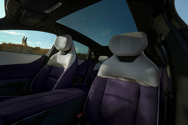 ห้องโดยสารของรถใช้การแสดงข้อมูล Head-up Display บนกระจกหน้าสำหรับผู้ขับ พร้อมมีจอทัชสกรีนขนาด 26 นิ้วยาวจากตรงกลางถึงด้านหน้าผู้โดยสาร ซึ่งสามารถแบ่งหน้าจอให้ผู้โดยสารใช้งานได้ นอกจากนี้ยังรองรับ Apple CaPlay ไร้สายและ Android Auto สามารถควบคุมบางการทำงานของรถจากระยะไกลผ่านแอปพ์ได้ และมีที่ชาร์จไร้สายมาให้ใช้