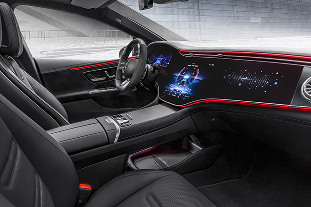 EQE ทั้ง 2 ถูกเพิ่มความสปอร์ตขึ้นภายนอกรถด้วยกระจังหน้าแบบปิดในสไตล์ AMG พร้อมเน้นใช้วัสดุสีดำเงา รวมทั้งยังมี Splitter หน้าและสปอยเลอร์หลังเพื่อเสริมแอโรไดนามิกของรถ ในขณะที่ห้องโดยสารของรถใช้ Artico และไมโครไฟเบอร์เป็นอุปกรณ์มาตรฐานในการหุ้มเบาะสปอร์ต นอกจากนี้ยังมีพวงมาลัยท้ายแบน แป้นเหยียบสปอร์ต และพรมปูพื้น AMG เป็นอุปกรณ์มาตรฐาน รวมทั้งใช่สีแดงเพิ่มความเด่นในรถ