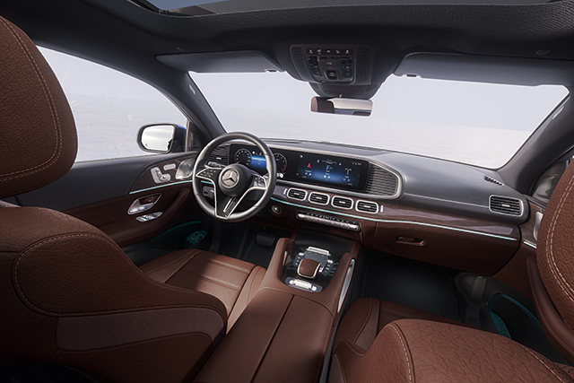 ภายในห้องโดยสารถูกเพิ่มความหรูด้วยกรอบช่องระบบปรับอากาศโครเมียมเหมือน Mercedes-Maybach GLS พร้อมเพิ่มความไฮเทคด้วยพวงมาลัยรุ่นใหม่มีเซ็นเซอร์ที่ก้านพวงมาลัยแนวนอนสำหรับควบคุมจอระบบ Infotainment ส่วนการแต่งในห้องโดยสารมีทั้งการใช้สีเบจร่วมกับสีดำ รวมทั้งสีน้ำตาลร่วมกับสีดำเพิ่มเข้ามา