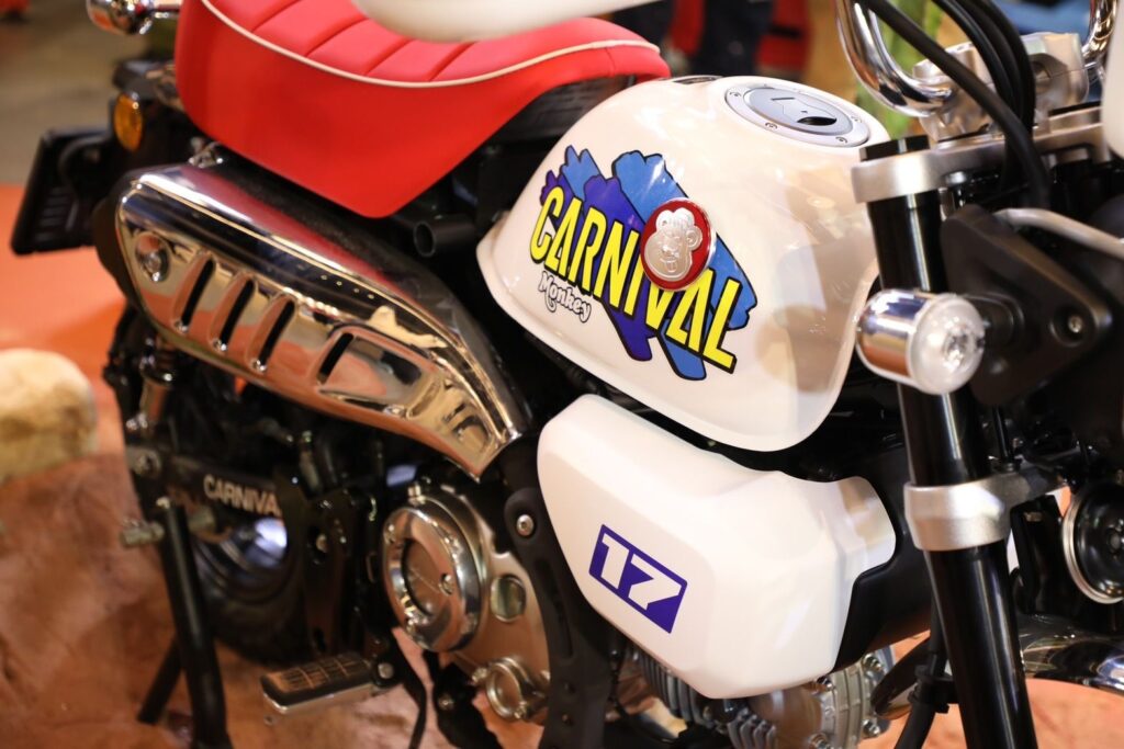 Monkey Carnival Limited Edition ได้รับการออกแบบด้วยแรงบันดาลใจจาก Baja Motocross ที่โด่งดังในอดีต ถ่ายทอดกลิ่นอายของรถสายลุยสู่ Monkey ได้อย่างลงตัว โดดเด่นด้วยลายกราฟิกแนวสตรีทบนถังน้ำมัน Carnival Fuel Tank มาพร้อมเบาะ Carnival Red Seat สีแดง เติมสีสันให้สตรีทไปอีกขั้น เสริมลุคความเป็น Motocross ด้วย Carnival Hand Guard และ Carnival Wind Shield ให้สายลุยได้สนุกอย่างเต็มที่ ตอกย้ำความ Limited ด้วยการรัน Serial Number เลข 01-99 ที่ตัวถังและครอบกรองอากาศด้านข้างรถ
