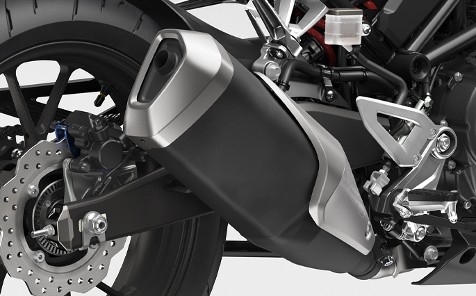 New CB300R NEO SPORTS CAFÉ  ผสานสองขั้วความเท่ไว้อย่างลงตัว ด้วยดีไซน์โมเดิร์นคลาสสิกที่เป็นเอกลักษณ์ พร้อมขับสไตล์ให้โดดเด่นเหนือกว่ากับสีเหลือง PEARL DUSK YELLOW เท่กว่าเดิมกับ DESIGN SPORTY MUFFLER ท่อไอเสียปรับแต่งใหม่ ให้ทุกมุมมองเต็มไปด้วยความเร้าใจ และให้เสียงเครื่องยนต์ที่ดุดันทรงพลัง