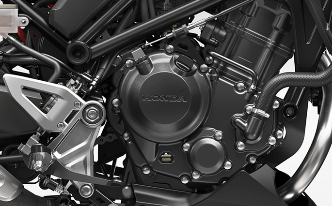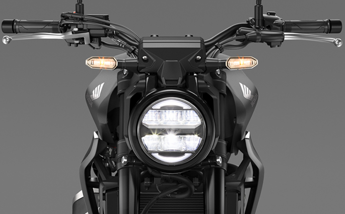 New CB300R ยังคงแรงเต็มพลังด้วยเครื่องยนต์ 286 ซีซี 4 วาล์ว มอบสมรรถนะการขับขี่ที่ดุดันเร้าใจ FULL LED LIGHTING SYSTEM ล้ำหน้าด้วยระบบไฟส่องสว่าง LED รอบคัน พร้อมไฟหน้าทรงกลมคงเอกลักษณ์ความเท่คลาสสิก TAPERED RUBBER MOUNTED HANDLEBAR แฮนด์บาร์ ขนาดเส้นผ่านศูนย์กลาง 28.6 มม.