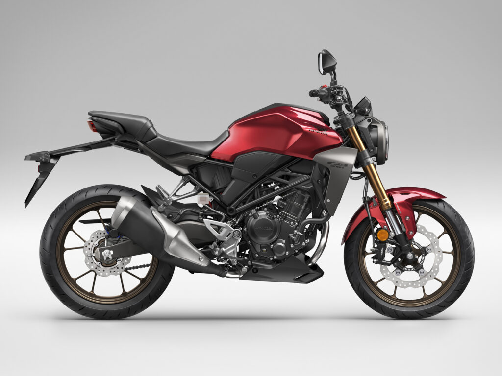 New CB300R มีทั้งหมด 3 สี ประกอบด้วยสีเหลือง PEARL DUSK YELLOW สีแดง CANDY CHROMOSPHERE RED และสีดำ MAT GUNPOWDER BLACK METALLIC ราคาแนะนำที่ 155,200 พร้อมพาคุณโลดแล่นไปกับความเท่เหนือกาลเวลา