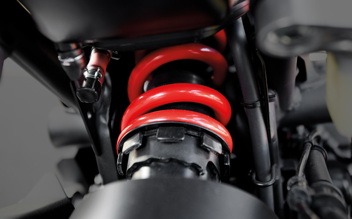 บริเวณตอนกลางออกแบบเป็นรูปทรงเรียว เพื่อการควบคุมที่มั่นคงยิ่งขึ้น MONOSHOCK WITH 7-STEP PRELOAD ADJUSTMENT ตอบโจทย์ทุกการขับขี่อย่างลงตัว ด้วยโช้กหลังแบบ PRELOAD ADJUSTMENT ที่ปรับได้ถึง 7 ระดับ