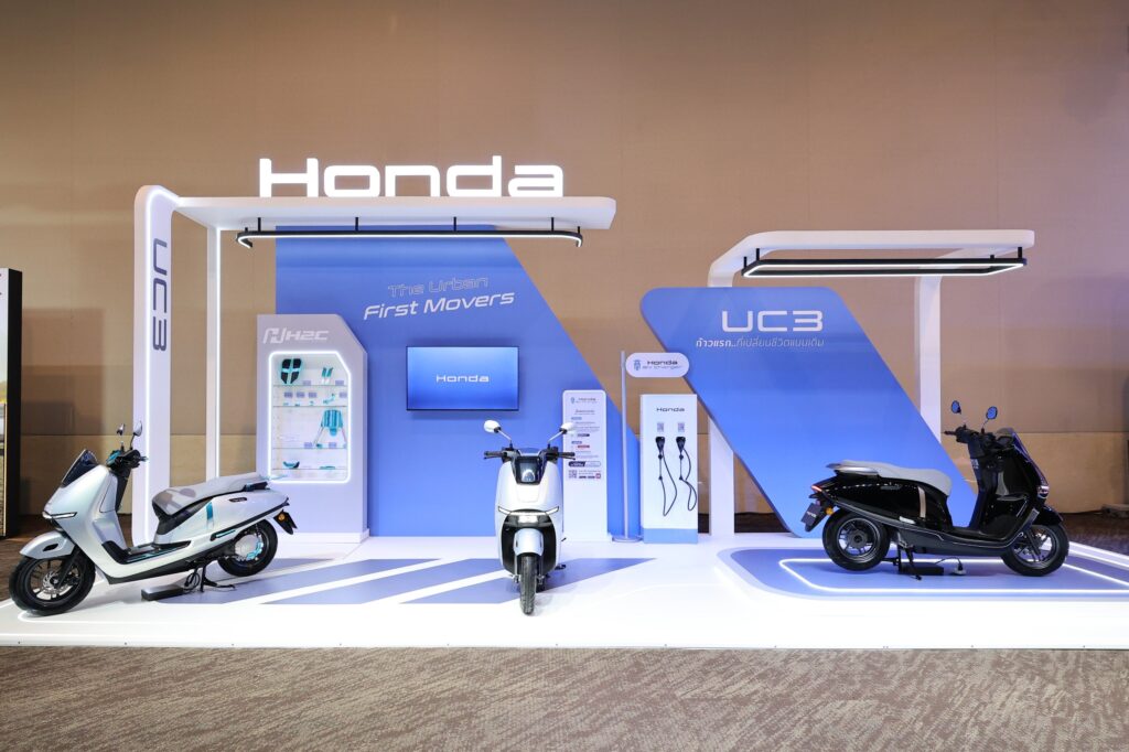 New Honda UC3 รถจักรยานยนต์ไฟฟ้าภายใต้คอนเซ็ปต์ ‘The Urban First Movers ก้าวแรกที่เปลี่ยนการใช้ชีวิตแบบเดิม’ตอบโจทย์การเดินทางของคนเมืองในชีวิตประจำวัน ขับเคลื่อนด้วยมอเตอร์ไฟฟ้ากำลังสูงสุด 6 kWh ทำงานร่วมกับแบตเตอรี่ Lithium-ion LFP มาตรฐานสากล UNR136 วิ่งได้ไกลสูงสุด 122 กิโลเมตรต่อการชาร์จหนึ่งครั้ง ทำความเร็วสูงสุด 80 กม./ชั่วโมง พร้อม 3 โหมดการขับขี่ ได้แก่ Econ, Standard, Sport และระบบ Reverse Assist Function สำหรับช่วยถอยหลัง โดดเด่นด้วยดีไซน์โมเดิร์น ไฟหน้า LED แบบ Integrated Light Bar หน้าจอ TFT ขนาด 5 นิ้ว รองรับ Honda RoadSync ฟังก์ชันอำนวยความสะดวกครบครัน พร้อมด้วย Honda SMART KEY ช่องชาร์จ USB Type-C และพื้นที่เก็บของหลากหลายตำแหน่ง พร้อมโครงสร้าง Stability Frame ที่ช่วยเพิ่มความมั่นคงและความมั่นใจในการขับขี่ทุกเส้นทาง อีกทั้งไทยฮอนด้าได้เปิดตัว Honda ev Charger แห่งแรกของประเทศไทยที่ศูนย์การค้าเซ็นทรัลเวิลด์ และมีแผนขยายกว่า 230 สถานี เพื่อรองรับการใช้งานภายในปีนี้ และอีก 800 สถานี ภายใน พ.ศ. 2572