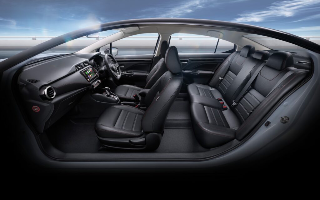 รวมทั้งยังมีห้องโดยสารที่กว้างขวางนั่งสบาย พร้อมกับเทคโนโลยีความปลอดภัยครบครัน โดยเป็นรุ่นแรกของเซกเมนท์ที่มีการติดตั้งฟังก์ชั่น SOS เพื่อขอความช่วยเหลือในกรณีฉุกเฉิน NissanConnect Services ที่ช่วยให้ผู้ขับขี่สื่อสารและควบคุมรถได้ด้วยระบบสั่งการระยะไกลต่าง ๆ เช่น ระบบสตาร์ทเครื่องยนต์ระยะไกล และระบบตรวจสอบสถานะการล็อกประตู ตลอดจนเทคโนโลยีที่เพิ่มความสะดวกและปลอดภัยเช่น ระบบควบคุมความเร็วอัตโนมัติ (Cruise Control) ในรุ่น EL ขึ้นไป
