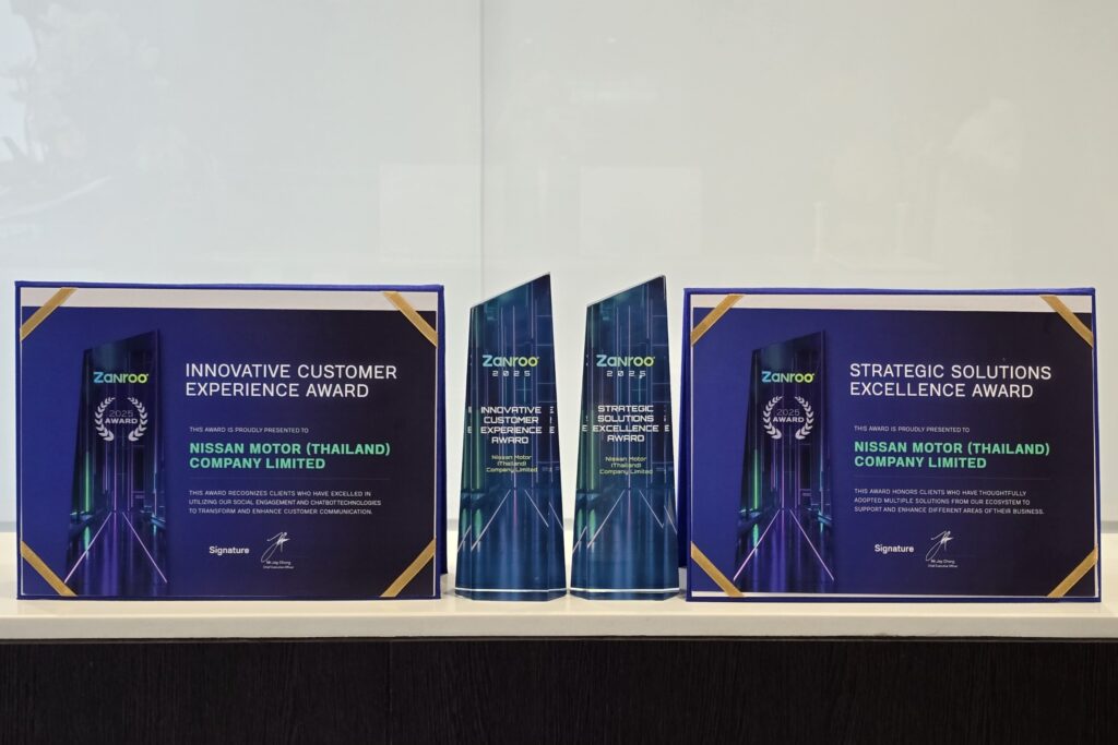 รางวัล Innovative Customer Experience Award มอบให้แก่นิสสัน ประเทศไทย จากความสำเร็จในการพัฒนาระบบบริการลูกค้าแบบบูรณาการที่ผสานการทำงานของ Social Customer Care, เทคโนโลยี GenAI และระบบบริหารความสัมพันธ์ลูกค้า (CRM) ของนิสสัน เพื่อส่งมอบบริการที่รวดเร็ว ชัดเจน และสม่ำเสมอในทุกช่องทาง สะท้อนแนวคิดของบริษัทที่เชื่อว่า “ทุกเสียงของลูกค้ามีความหมาย”