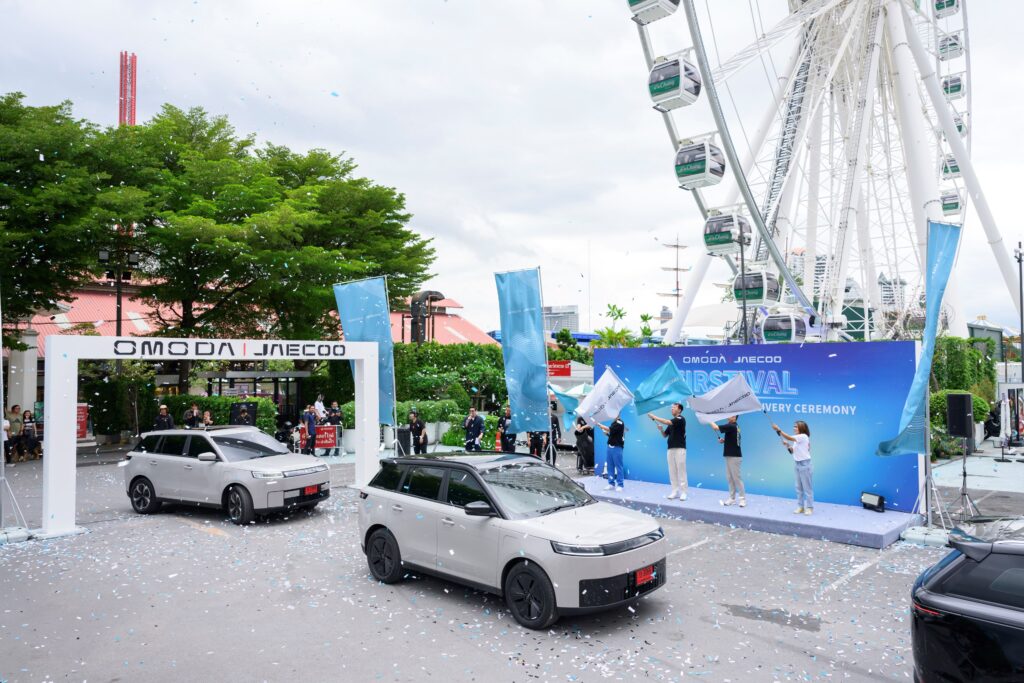 OMODA & JAECOO (อ่านว่า โอโมด้า แอนด์ เจคู่) ผู้นำนวัตกรรมยานยนต์พลังงานใหม่ระดับพรีเมียม จัดงานฉลองส่งมอบรถ JAECOO 5 EV ล็อตแรกให้กับลูกค้าแล้วกว่า 1,200 คัน ภายในระยะเวลาเกือบ 1 เดือน พร้อมสร้างปรากฏการณ์ครั้งประวัติศาสตร์ด้วยการจัดแสดงรถ JAECOO ในรูปแบบตัวเลข 1,200 อันยิ่งใหญ่ ณ เอเชียทีค เดอะ ริเวอร์ฟร้อนท์ สะท้อนความสำเร็จและความเชื่อมั่นของผู้บริโภคที่มีต่อแบรนด์ในการดำเนินธุรกิจครบ 1 ปีในประเทศไทย