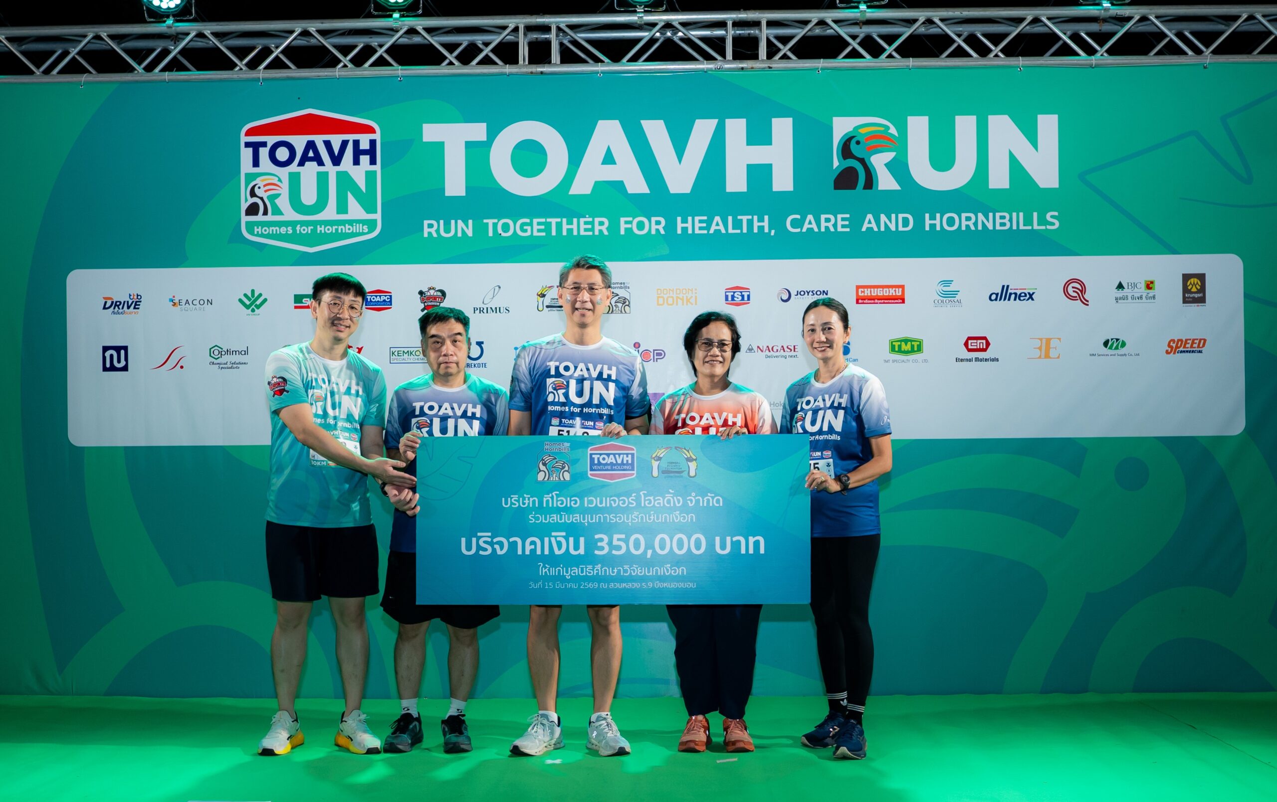 สำหรับกิจกรรมวิ่งการกุศล “TOAVH RUN X Homes for Hornbills” จัดขึ้นที่สวนหลวง ร.9 เมื่อกลางเดือนมีนาคมที่ผ่านมา โดยได้รับความสนใจจากประชาชน นักวิ่ง และผู้รักธรรมชาติ เข้าร่วมมากถึง 1,600 คน โดยการแข่งขันแบ่งเป็น 3 ประเภท ได้แก่ Mini Marathon ระยะ 10 กม., Fun Run ระยะ 5 กม. และ Family Run