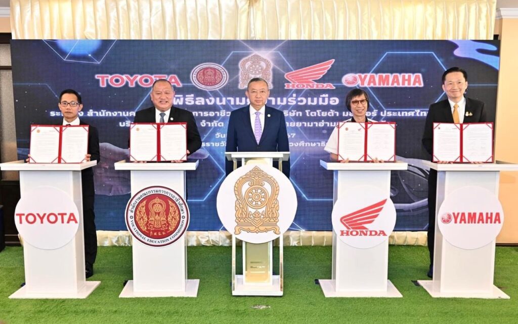 พิธีลงนามความร่วมมือสนับสนุนและส่งเสริม การจัดการอาชีวศึกษาระบบทวิภาคีเพื่อผลิตและพัฒนากำลังคนสมรรถนะสูง ให้สอดคล้องกับความต้องการของภาคอุตสาหกรรมยานยนต์