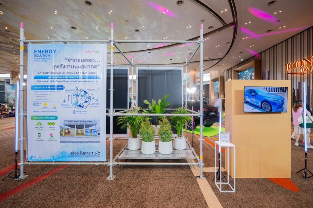 ภายในงานโตโยต้าได้สื่อสารแนวคิดด้านสิ่งแวดล้อมภายใต้เป้าหมาย “ความเป็นกลางทางคาร์บอน (Carbon Neutrality)” ซึ่งเป็นหนึ่งในพันธกิจหลักขององค์กร โดยครอบคลุมการดำเนินงานตั้งแต่การพัฒนากระบวนการผลิตที่เป็นมิตรต่อสิ่งแวดล้อมการบริหารจัดการตลอดวงจรชีวิตผลิตภัณฑ์ ไปจนถึงการสนับสนุนการเพิ่มพื้นที่สีเขียวในชุมชนทั่วประเทศ เพื่อร่วมลดการปล่อยก๊าซเรือนกระจกอย่างเป็นรูปธรรม โดยตระหนักดีว่าการบรรลุเป้าหมายด้านสิ่งแวดล้อมไม่สามารถเกิดขึ้นได้จากองค์กรใดองค์กรหนึ่งเพียงลำพัง แต่จำเป็นต้องอาศัยความร่วมมือจากภาครัฐ ภาคเอกชน และภาคประชาชนในการร่วมกันลงมือเปลี่ยนแปลงพฤติกรรมและวิถีชีวิตเพื่อสร้างผลลัพธ์ที่ยั่งยืนในระยะยาว