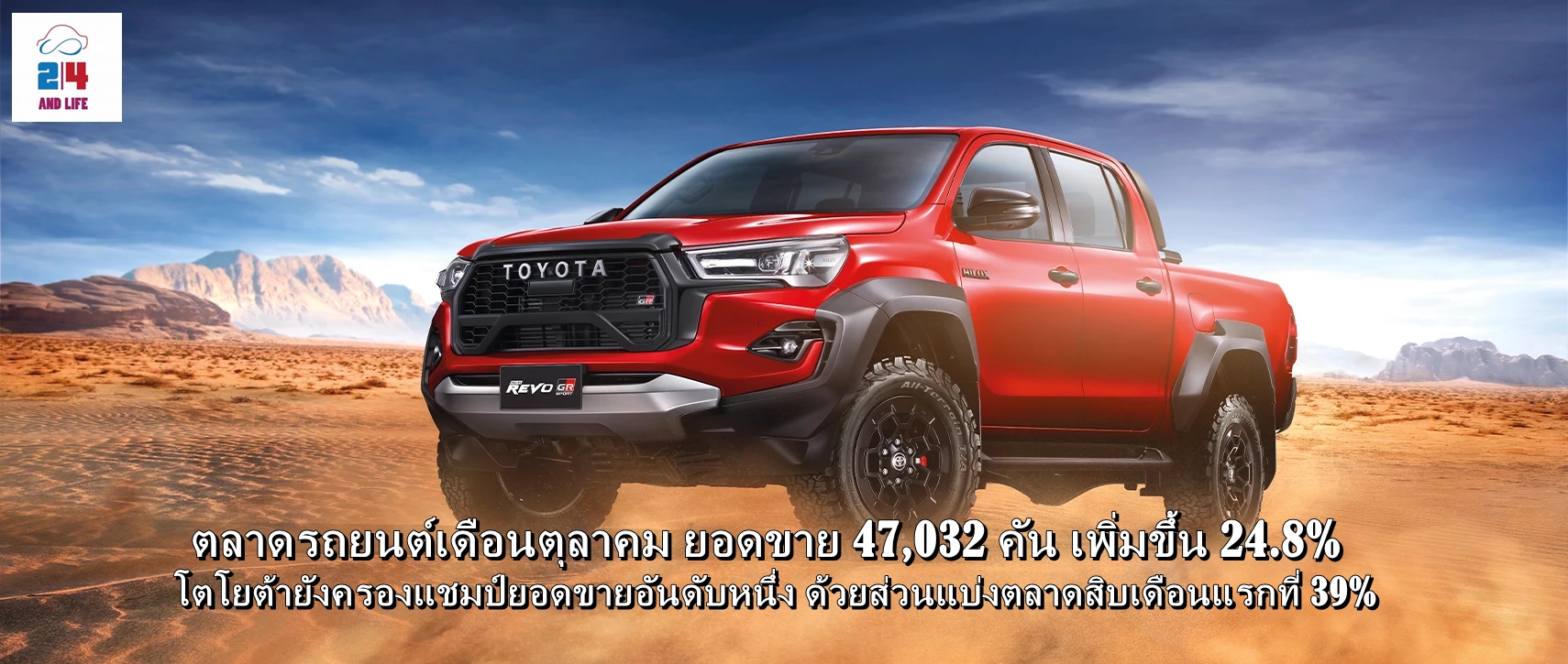 ตลาดรถยนต์เดือนตุลาคม ยอดขาย 47,032 คัน เพิ่มขึ้น 24.8% โตโยต้ายังครองแชมป์ยอดขายอันดับหนึ่ง ด้วยส่วนแบ่งตลาดสิบเดือนแรกที่ 39%